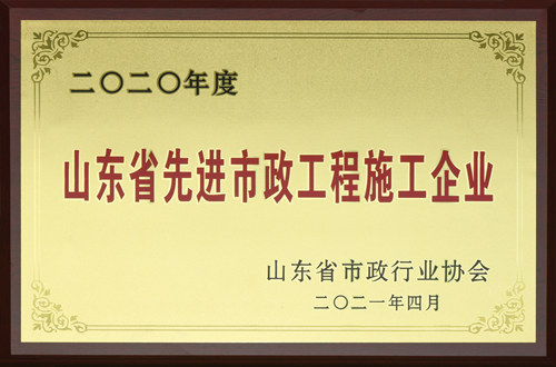 集团荣获“2020年度山东省先进市政工程施工企业”
